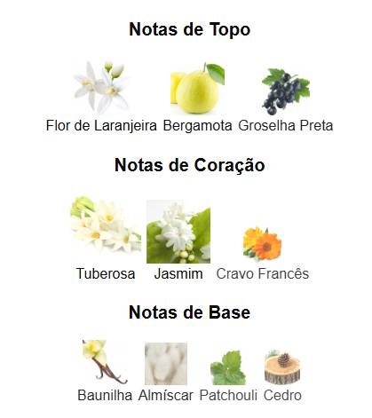 Uma saída luminosa e radiante de flor de laranjeira e bergamota abre caminho para um coração cheio de feminilidade, onde jasmin e tuberosa entregam aquele ar “romântico-chique” que conquista no primeiro encontro. O fundo cremoso e levemente adocicado dá conforto e deixa um rastro limpo, moderno e extremamente agradável.